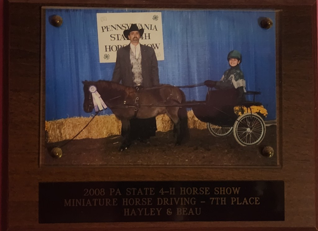 I have to start this post by talking about Beau, he is a registered miniature horse that my parents bought when he was a yearling. My dad taught him (and me) to drive in the cart. He went to so many parades and shows. He always went to the fair with us when we were little and of course we dressed him and the whole family up for costume class. He also took my sisters and I through 4-H as we showed in driving, mini trail, and showmanship. I was able to qualify for the PA State 4-H Show in mini driving and placed 7th in 2008. He loved to show off and would prance when we competed against a lot of people. He is such a character and although he is small, he is always the one in charge of the pasture.