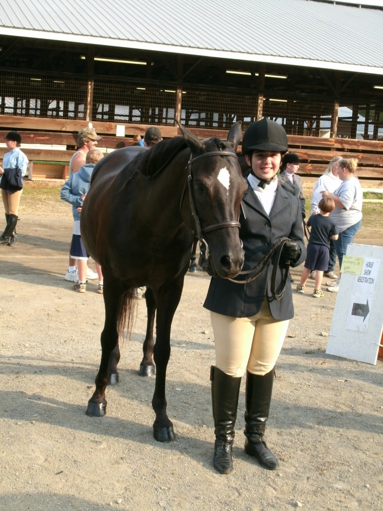 I was able to lease Beauty from my cousin to show in 4-H for a year. She gave me lessons riding English on her and I competed mostly in the flat classes. I always remember the one time she took me with her to a schooling show and I went in my first jumping class, it was only a small cross-rail class, but to me at the time the jumps were huge. I think we only loped over one and the rest we kind of trotted over. It makes me laugh every time I think about that class. I learned so much from that year of riding English. I still find myself doing the same warmup that she taught me and shuddering at the thoughts of posting with no stirrups.