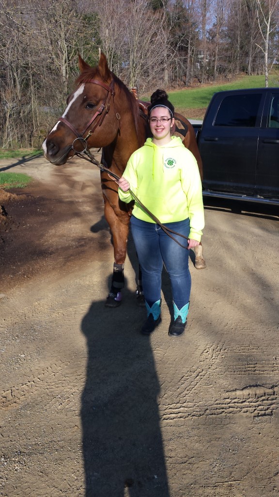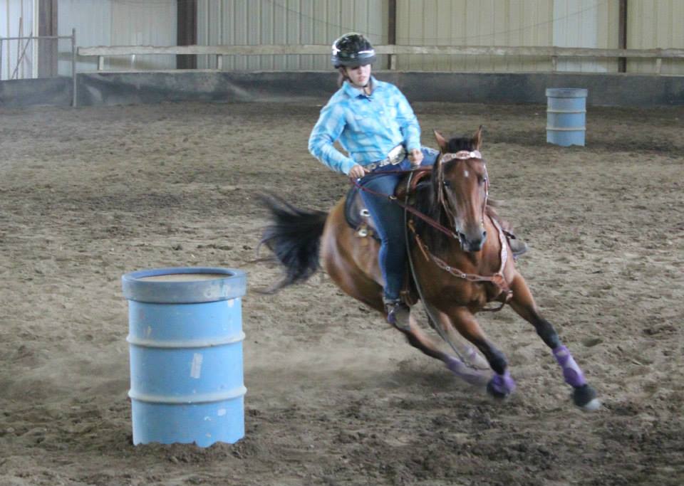 Sadie was my first barrel horse. When we were looking at buying her, we had her at our barn for a week to ‘try her’ and at the end of the week we took her to a show to see if she would work out. I showed her all day and at the end before we left, my parents told me they had bought her for me. What I didn’t know was they were set on buying her before we even went to the show. She was the sweetest little mare and would do anything you asked. We didn’t know much about her background except that she was supposed to have had a little bit of reining training. She was around 11 or 12 when we got her, and I showed in every class I could. She would do all of the game and fun classes but was especially good at poles. One year at the fair I showed all the English and Western pleasure classes, plus the game classes and won almost everything (except the one English class where I fell off, it doesn’t help when you try to grab the horn and there isn’t one). She was the first horse I rode bareback, and I would ride her around the farm. Sadie developed some pretty bad arthritis in her hocks. My last year showing her we were so close to qualifying for states, although I didn’t know it was the last time (nobody ever does). Her arthritis progressed pretty bad over the winter, and then she became lame in both front feet. She had to be put down in the spring of 2015. She gave me so many things, but she really made me the rider I am today.
