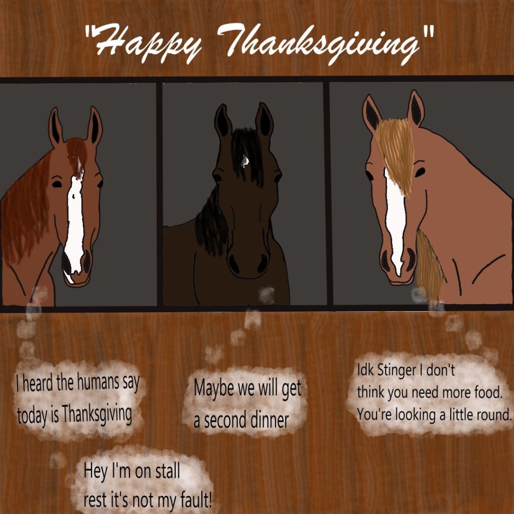Happy Thanksgiving from all of us at The Barrel Racer’s Journal! This is how I imagine this conversation went between the horses today.