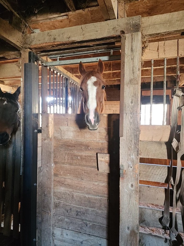 I didn’t have a picture of all the horses together due to the way our barn is set up, but I included some of them each separately looking out the doors. Stinger is now in a new stall and he can have conversations with Angus and Diesel as much as he wants!