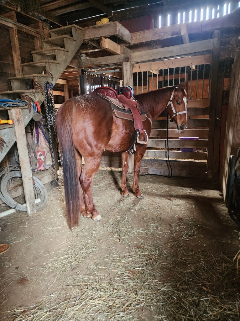 So far, we have done a barrel drills and a handful of patterns. He seems to really want to do that pattern and gets a little confused on why we are going slow, but he will still do it. I have to keep working on my confidence on the pattern again. Whenever I can ride with two hands between the barrels, Reno does a lot better. He seems to be feeling good and even gave a little playful buck the other day after the third barrel, almost to say ‘hey that was fun, let’s do it again’.