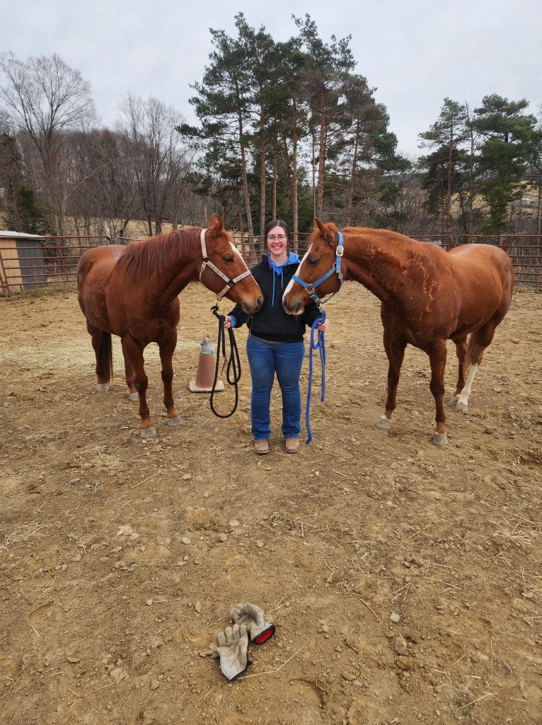 Stinger really enjoyed going outside, he had been on stall rest since October. He did run around quite a bit; but he had a ton of extra energy from being inside. After the first couple times, I could tell he was a little sore on both front and back right legs. I continued using his magnetic blanket overnight and started his redlight again. He also finally got to meet Reno (they are stalled on opposite ends of the barn, and he has only seen him from a distance). They seemed to make friends quickly and were playing in the fields across the fence. When I bring Reno over to saddle him, they will whinny to each other to say hi.