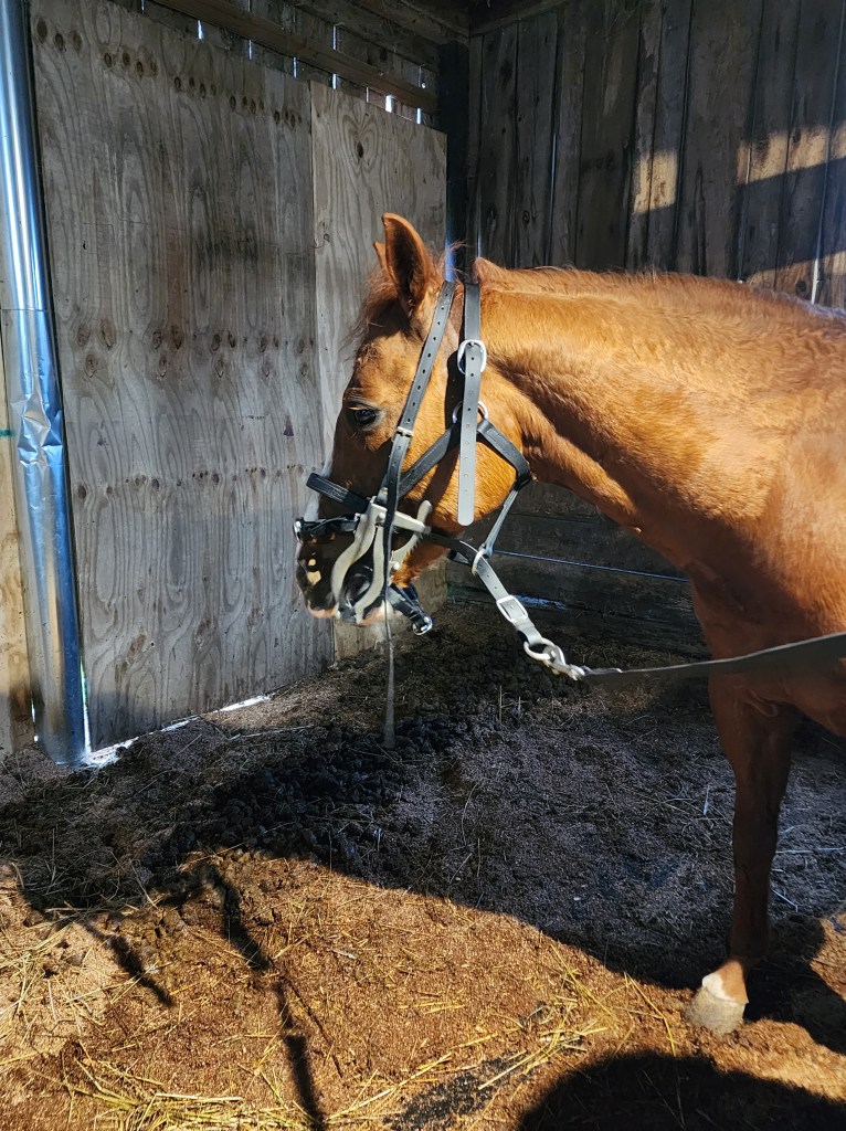 I restocked on my gastric supplement and bought 8 bags of feed. Even though it’s only April, the flies are back. I got a new bottle of fly spray and Reno got a flysheet and fly boots. Now he can be all matchy matchy with Stinger. I also had to get him a new clip to replace the broken one on his halter.