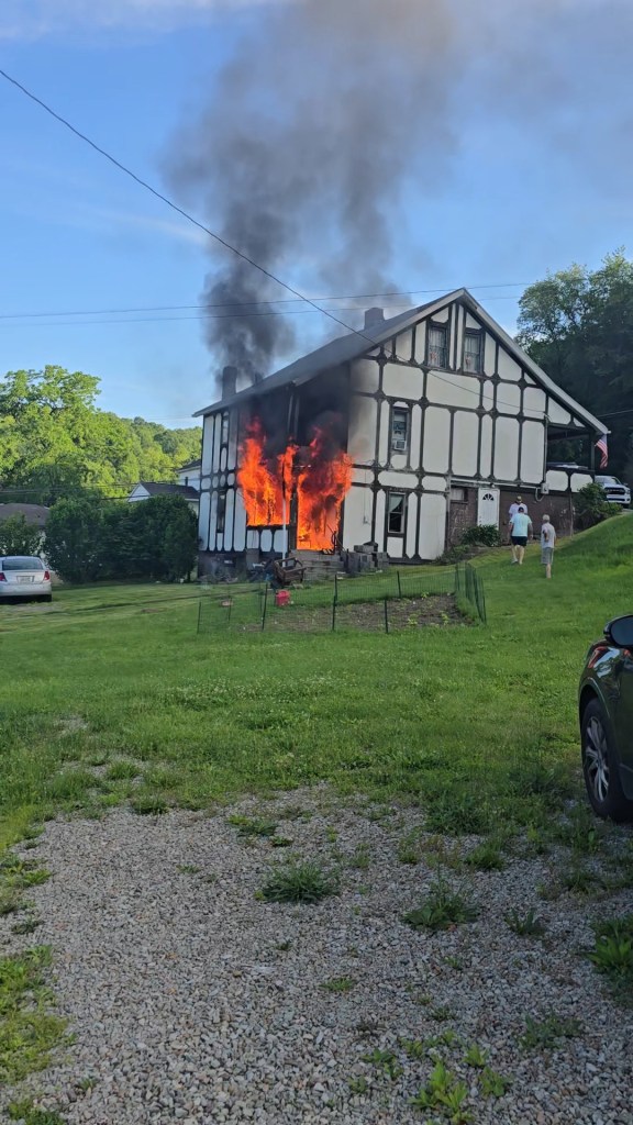 Well, life had some other plans. We had two route options, through Pittsburgh on 22 or the turnpike. We opted to take the turnpike because we didn’t want to get stuck in Pittsburgh traffic. Little did we know the traffic jam was going to affect us either way, we got stuck a half mile away from the arena. (We stopped once about halfway to give the horses a drink) While we were sitting in traffic, my mom noticed a burning plastic smell and saw the house right next to us was catching on fire. She got out and called 911, I got out to get cars to move up the road, so we could move the trailer to allow the firetrucks to get in. The traffic was affecting the firetrucks too, because they were at the rodeo and couldn’t get out. Two people got out of the house okay, and we were able to sneak around traffic with a back road to the rodeo. There was still traffic near the entrance, so my mom and I walked almost half a mile so we could check in. When we got there, they told us they had delayed the start time by a half an hour because of traffic, and they were just hearing about the fire. We got parked and the horses finally unloaded at 7:15 PM. Luckily, we had fans in the trailer to keep the air moving, since we sat in traffic in the sun for so long.